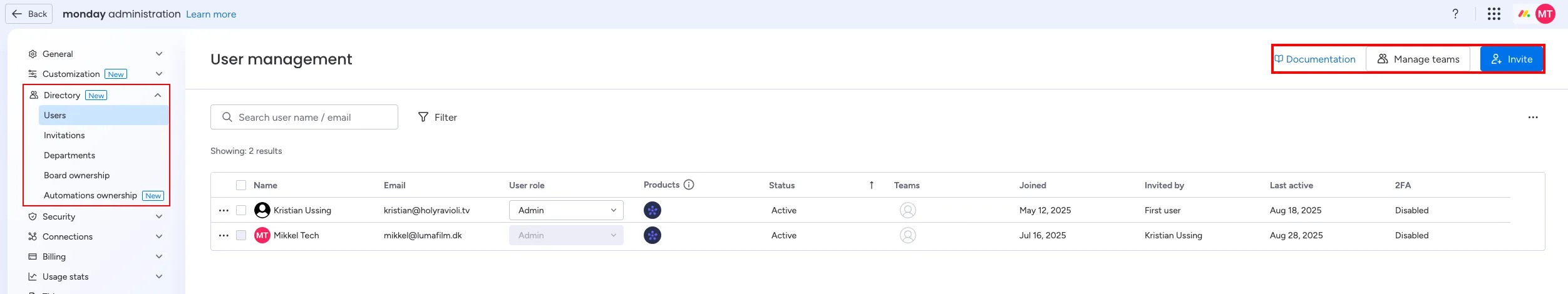 - Direkte link: https://holyravioli.monday.com/admin/my-team/my-team)