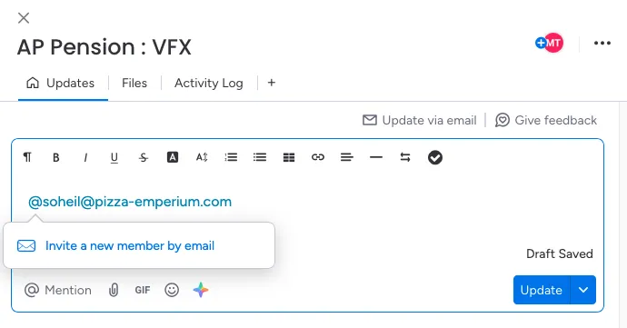 - Monday foreslår automatisk invitation hvis personen ikke allerede har adgang